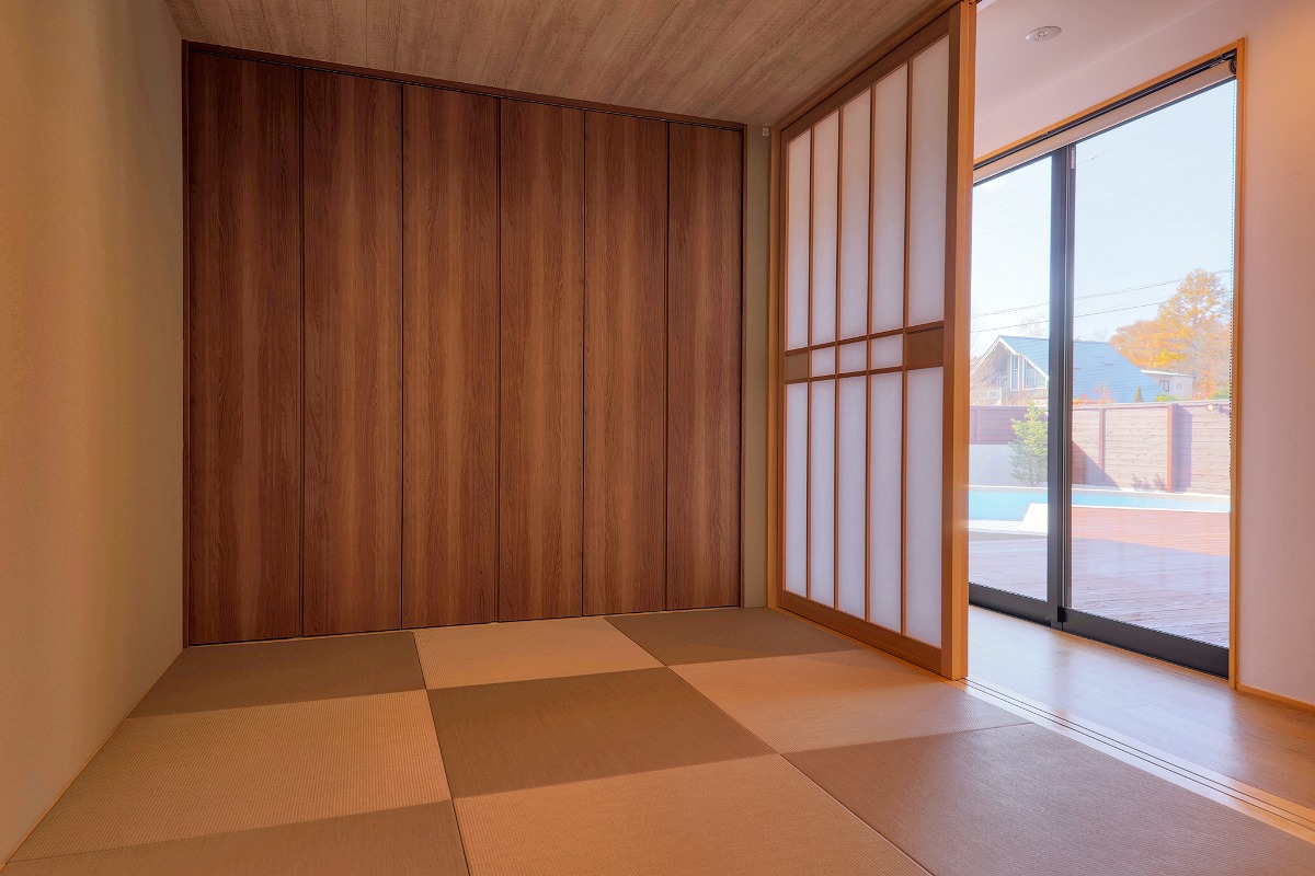室内にはセミダブルベッド2台と4畳半の畳スペースを用意した寝室、6畳の和室をご用意しており、6名まで宿泊可能となっております。